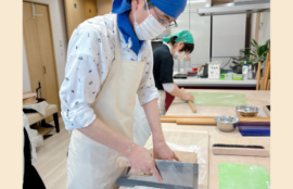 「最初は、全くそば打ちは初心者でしたが、先生方のサポートでなんとかそばを打てるようになり、ありがとうございました。今後も、そば打ちを極めたいと思いました。」