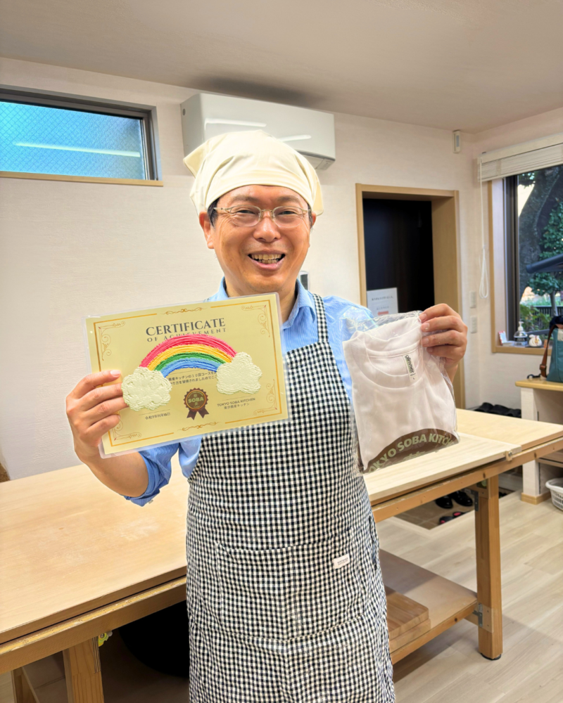 「最初は、全くそば打ちは初心者でしたが、先生方のサポートでなんとかそばを打てるようになり、ありがとうございました。今後も、そば打ちを極めたいと思いました。」