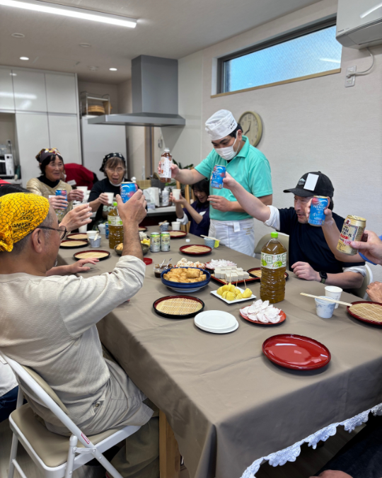 手が空いている方は食事の準備を手伝ってくださり、みんなでワイワイしながら宴の準備が進みました。お腹もいい感じに減ってきます(笑)