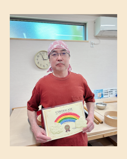 されました。現役のお料理のプロでいらして、洋食から和食まで幅広くご経験があるS様、今回、新たにそば打ちをの技術を身につけたいということで、お越しくださいました。